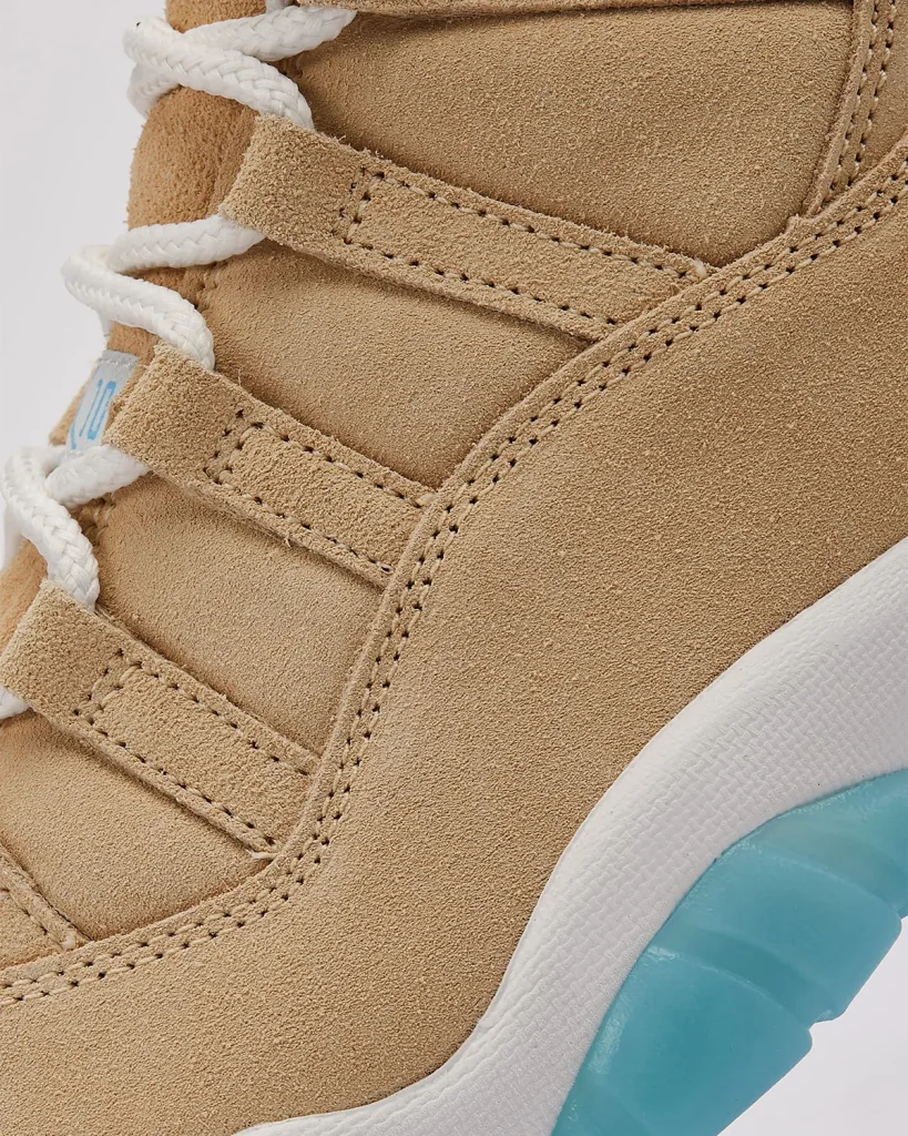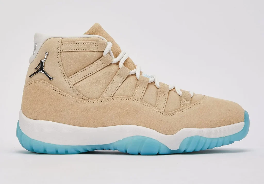- Features include tan suede, arctic-blue translucent soles and a metallic silver Jumpman