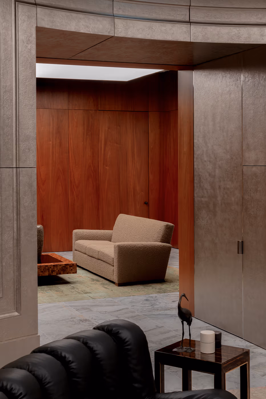 Art and design define the atmosphere, with rare pieces by François Xavier Lalanne, Charlotte Perriand and a Paul Poiret daybed. A new work by Mark Bradford, on loan from the Pinault Collection, reinforces the brand’s commitment to contemporary art.